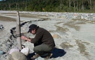 Teníamos que juntar leña seca para encender un fuego y comer algo. Fuimos varios a buscarla (en total siete), todos en la misma dirección en donde el río describía una curva pronunciada. Cuando me preparaba para ir, decidí llevar mi cámara y binoculares. Si bien era incómodo, ¡sobre todo para juntar leña!, nunca se sabe que puede aparecer. Al pasar la curva dirigí la vista al fondo del río, ya que dos Patos del Torrente habían volado previamente.